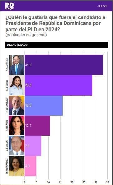 Santo Domingo.- El precandidato presidencial por el Partido de la Liberación Dominicana (PLD), Abel Martínez, se posicionó como el líder de la oposición y figura principal entre el electorado para encabezar la boleta que enfrente al oficialismo en las próximas elecciones del 2024.