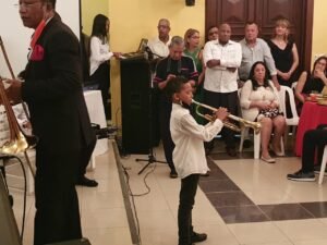 Los niños, niñas y adolescentes integrantes de la academia debutaron tocando con profesionalidad los instrumentos de viento, percusión, el piano y las cuerdas, interpretando canciones navideñas, merengues clásicos y canciones cristianas.