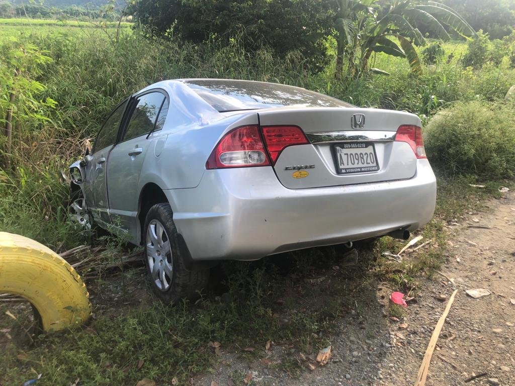 San Juan de la Maguana, RD- Un carro Honda Civic, de color gris, se salió de la carretera mientras se trasladaba de sur a norte en la carretera Anacahona ( Juan de Herrera- La Maguana ).