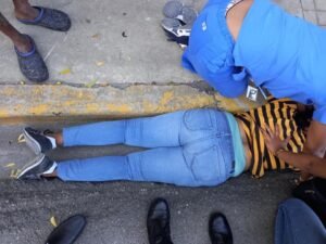 San Juan de la Maguana, RD.- Una Jeepeta de datos generales desconocidos hasta el momento, impactó la mañana de este lunes a algunas personas en la calle independencia próximo a la escuela Primaria Consuelo Matos, de esta demarcación.