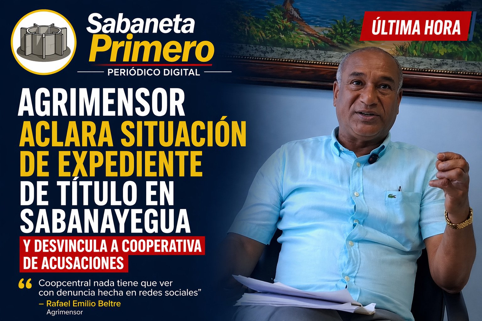 San Juan.– El agrimensor Rafael Emilio Beltré ofreció declaraciones públicas en respuesta a señalamientos realizados por la señora Güela Rubeli de la Cruz Mora en un medio de comunicación, aclarando el estado actual de un expediente de certificado de título correspondiente a la parcela 534-B, ubicada en el municipio de Sabanayegua.