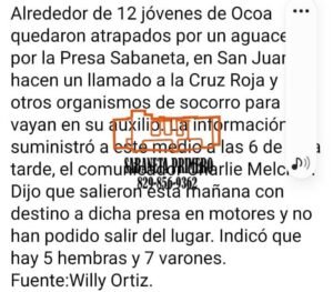 Esta es la informaci贸n que manejamos, seg煤n fuente de entero cr茅ditos de @sabanetaprimero  existen unos j贸venes que quedaron atrapados por un supuesto aguacero registrado en la zona alta de La Tierra Santa.