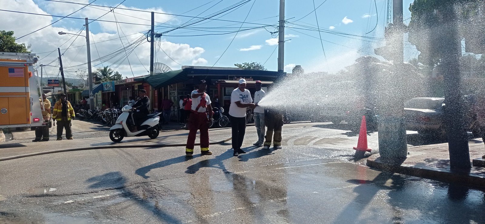 Masú, encabezó, junto a los distintos camiones del cuerpo de bomberos municipal, un lavado de las calles, recogidas de basuras y ornato por todo este territorio.