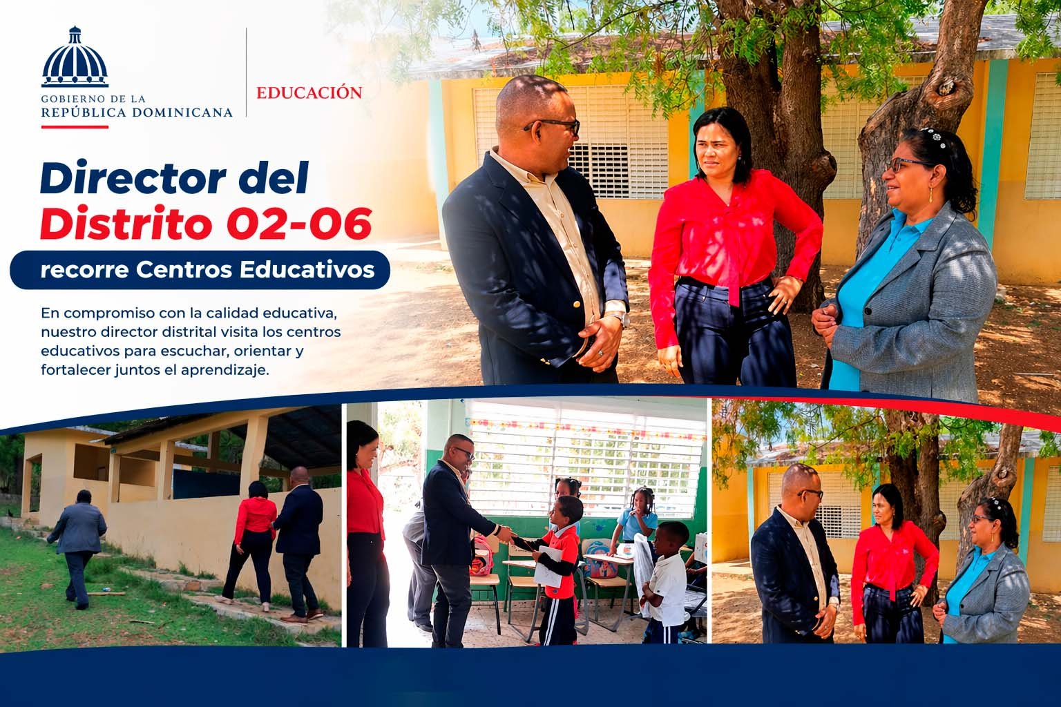 San Juan, R.D. — El director del Distrito Educativo 02-06, Ángel María Mateo de la Rosa, realizó una serie de visitas a distintos centros educativos de su demarcación, con el objetivo de fortalecer el diálogo directo con la comunidad escolar y continuar impulsando mejoras en cada plantel.