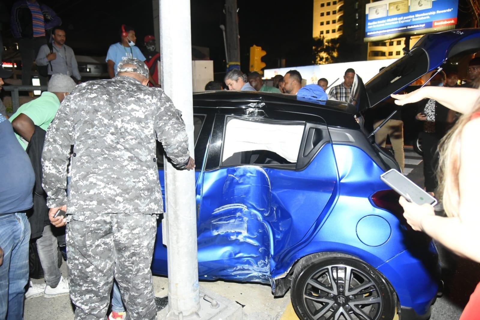 El golpe fue tan fuerte que dejó al hombre inconsciente y provocó que las bolsas de aire del carro se abrieran. Con el impacto, el conductor lesionado perdió el control y se estrelló contra un poste de los que sostienen el semáforo, se subió a la acera y chocó de frente con la verja de Diario Libre.