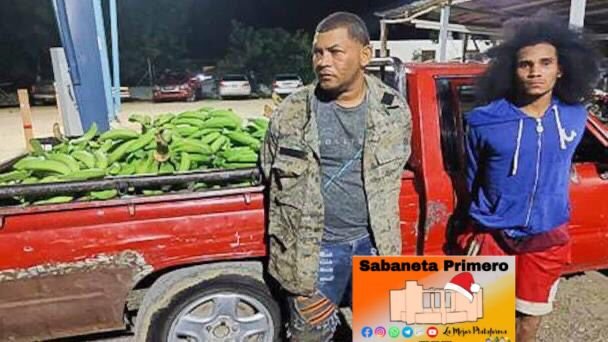 Agentes de la Policía Nacional apresaron a dos personas a quienes le ocuparon una camioneta cargada de plátanos, supuestamente robados en una finca del municipio de Esperanza, en la provincia Valverde.