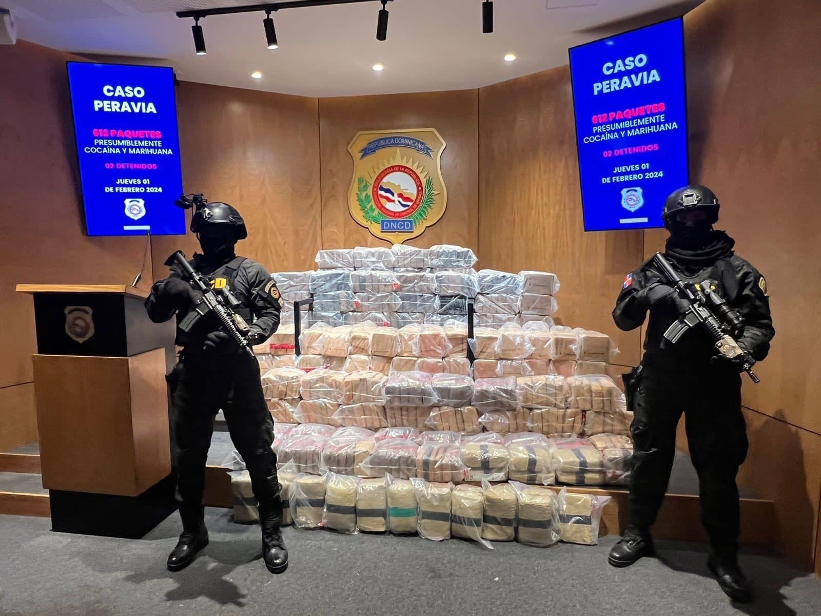 La Dirección Nacional de Control de Drogas (DNCD) en conjunto con la Armada de República Dominicana, la Fuerza Aérea y agencias de inteligencia del Estado, coordinados por el Ministerio Público, incautaron 612 paquetes presumiblemente cocaína y marihuana, durante una operación conjunta y combinada, desarrollada frente a las costas de la provincia Peravia.