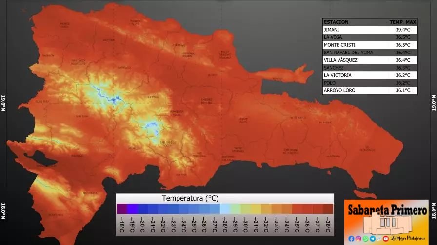 La temperatura más alta registrada en la citada demarcación por la Oficina Nacional de Meteorología (ONAMET) fue una máxima de 39.4°C. el pasado jueves 3 de agosto.