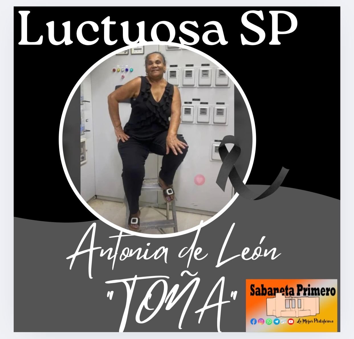 San Juan de la Maguana, RD- Familiares de la Señora Antonia de León, Doña Toña, anuncian por este medio que los últimos rezos serán efectuados este sábado 28 de junio en su residencia de la rotonda de Arroyo Hondo