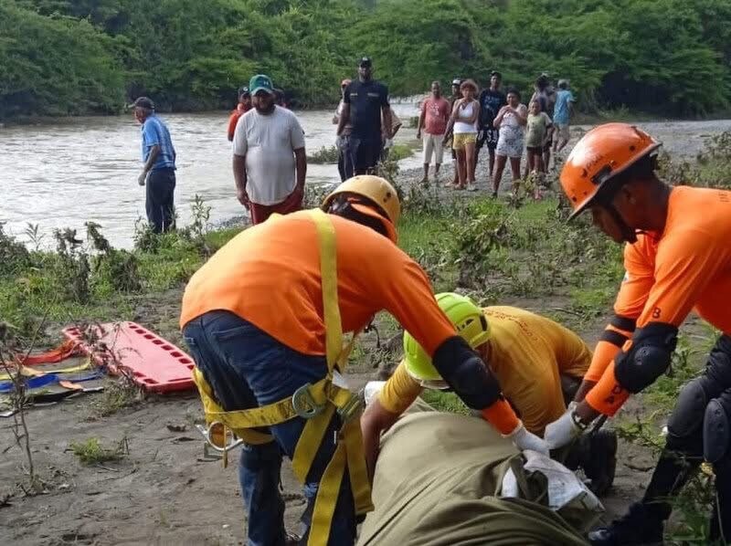 El joven, cuyo nombre se desconoce aún, fue arrastrado por dicho río cuando intentaba atravesarlo junto a otras personas en una camioneta. El afluente estaba crecido debido a los abundantes aguaceros del fin de semana.