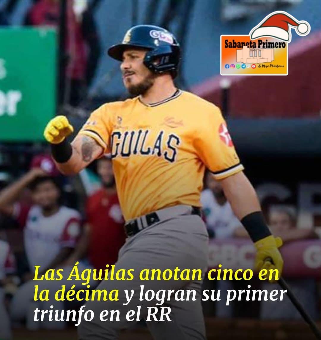 Las Águilas Cibaeñas (1-1) hicieron un rally de cinco carreras en la parte alta de la décima entrada para vencer 10-6 a los Gigantes del Cibao (0-2) y lograr su primer triunfo en la fase semifinal de la pelota invernal dominicana.