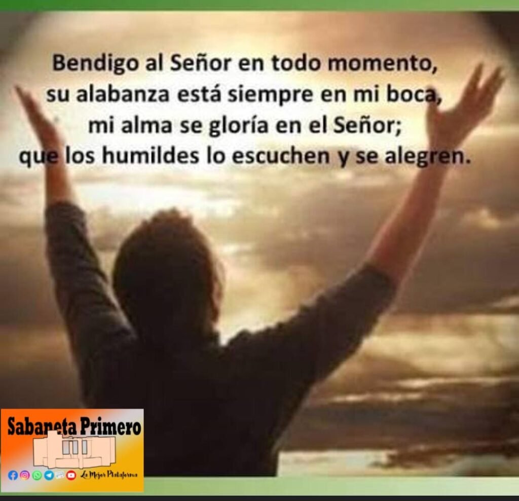 Bendigo al Señor en todo momento, su alabanza está siempre en mi boca; mi alma se gloría en el Señor: que los humildes lo escuchen y se alegren. R/.