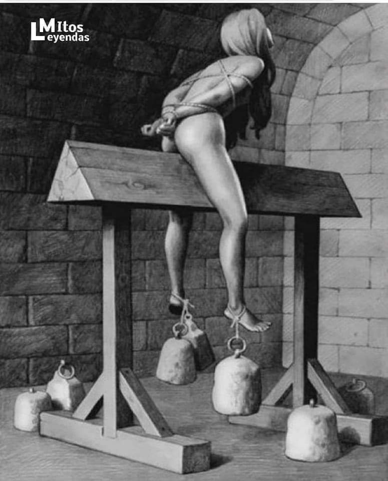 El acusado sería montado sobre el caballo, con pesas en los tobillos y las manos atadas a la espalda. Se esperaba que mantuvieran esta posición durante horas, a veces días.