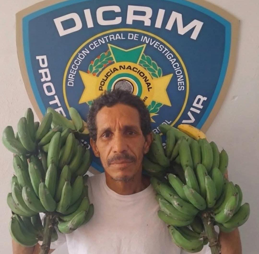 Miembros de la Dirección Regional Sur de la Policía con asiento en el Municipio de Cabral, apresaron a un hombre acusado de haberse robado dos racimos de guineos en un propiedad privada.