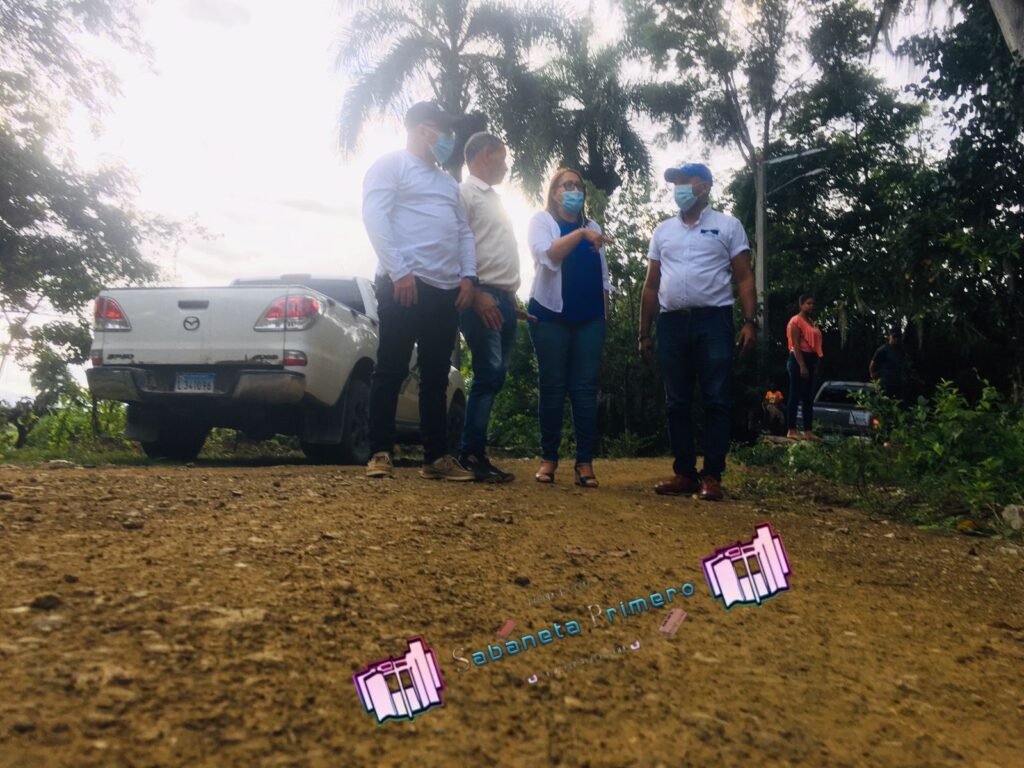 La Prof. Elvira Corporan de los Santos, el contratista Antonio Familia, el Dr. Luciano Sánchez Romero y una comisión recorrieron parte del distrito.