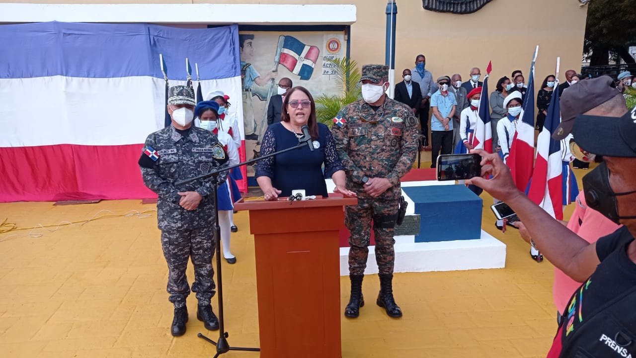 Dicho acto inició a partir de las 8 de la mañana en la explanada de la escuela comenzaron los actos en recordación del patricio. Con el izamiento de la bandera nacional y honores de estilo por un batallón mixto del E R D y la Policía Nacional a los acordes del himno nacional.