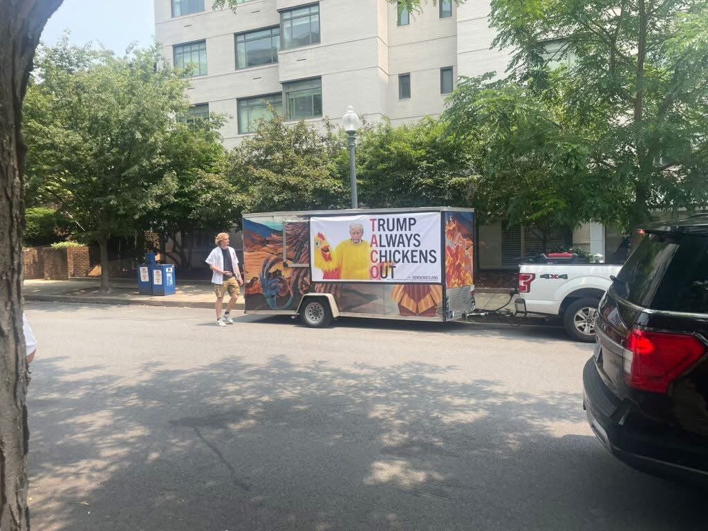 El Comité Nacional Demócrata (DNC) estacionó este martes un camión de tacosfrente a la sede del Comité Nacional Republicano (RNC) en la capital estadounidense, en lo que fue interpretado como una burla directa al presidente por un apodo generado a raíz de sus decisiones sobre aranceles.