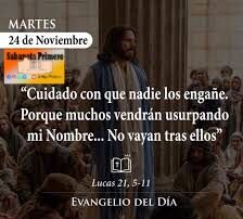 Él contestó: «Cuidado con que nadie los engañe. Porque muchos vendrán usurpando mi nombre, diciendo: “Yo soy”, o bien “El momento está cerca”; no vayan tras ellos. Cuando oigan noticias de guerras y de revoluciones, no tengan pánico. Porque eso tiene que ocurrir primero, pero el final no vendrá en seguida». Luego les dijo: «Se alzará pueblo contra pueblo y reino contra reino, habrá grandes terremotos, y en diversos países epidemias y hambre. Habrá también espantos y grandes signos en el cielo».