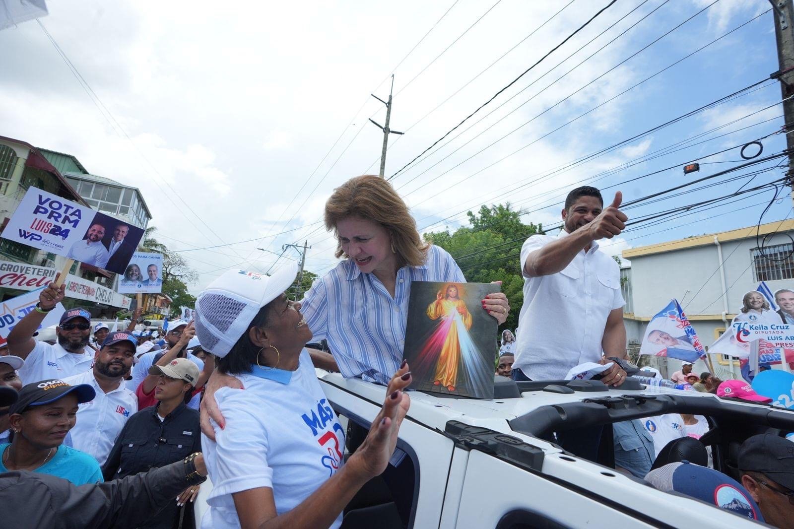 Las demostraciones de fe se hicieron notar en el cierre de campaña de la vicepresidenta de la República y candidata a esa misma posición, por el Partido Revolucionario Moderno (PRM), Raquel Peña, quien tuvo un emotivo encuentro con una mujer devota que le regaló una imagen de la Divina Misericordia.