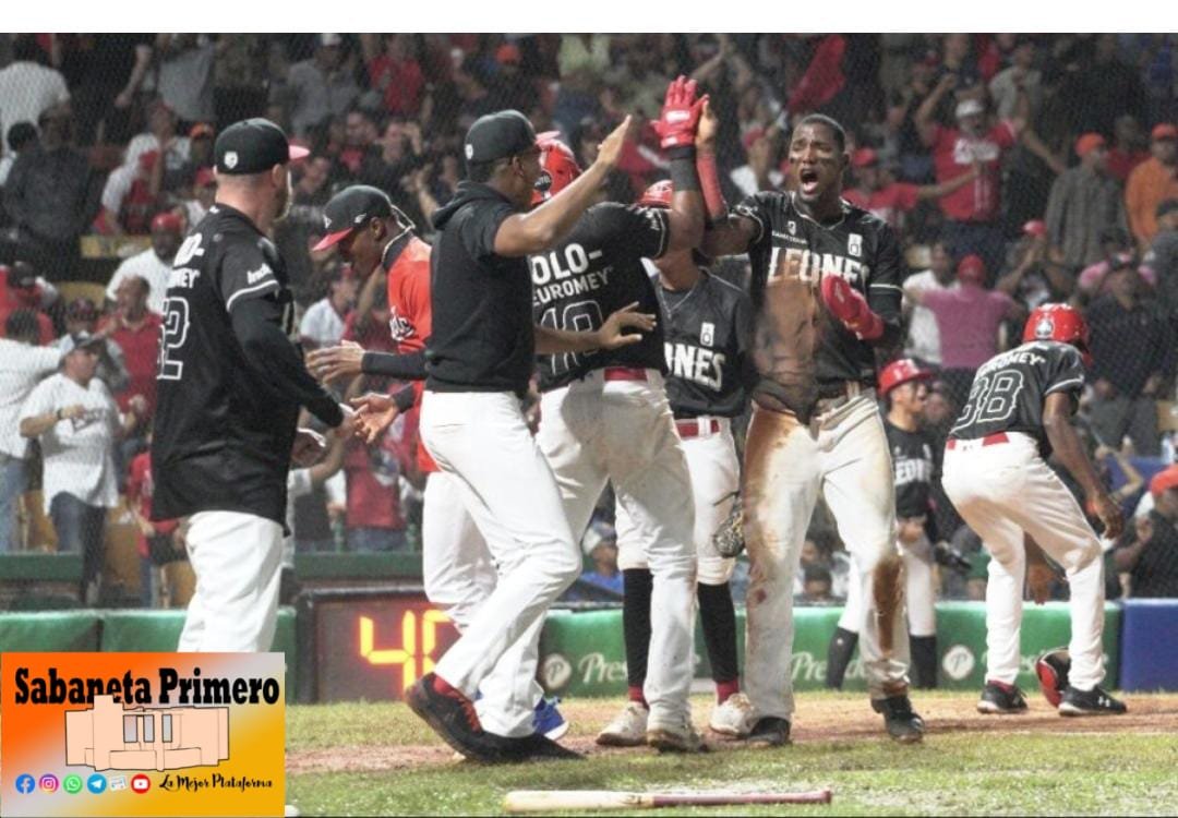 Santo Domingo.- En el primer partido de la Serie Final de LIDOM, los Leones del Escogido vinieron de atrás este miércoles en el octavo episodio con un rally de cinco anotaciones para vencer 7-6 a los Toros del Este en el estadio Quisqueya Juan Marichal.