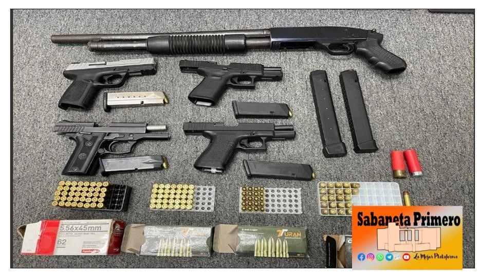 De acuerdo a informaciones, en este allanamiento se ocuparon varias armas, municiones y un pasamontañas; así como dos cargadores para pistolas glock con capacidad para 30 cápsulas y cientos de envolturas con residuos de un polvo blanco que presumiblemente es cocaína.
