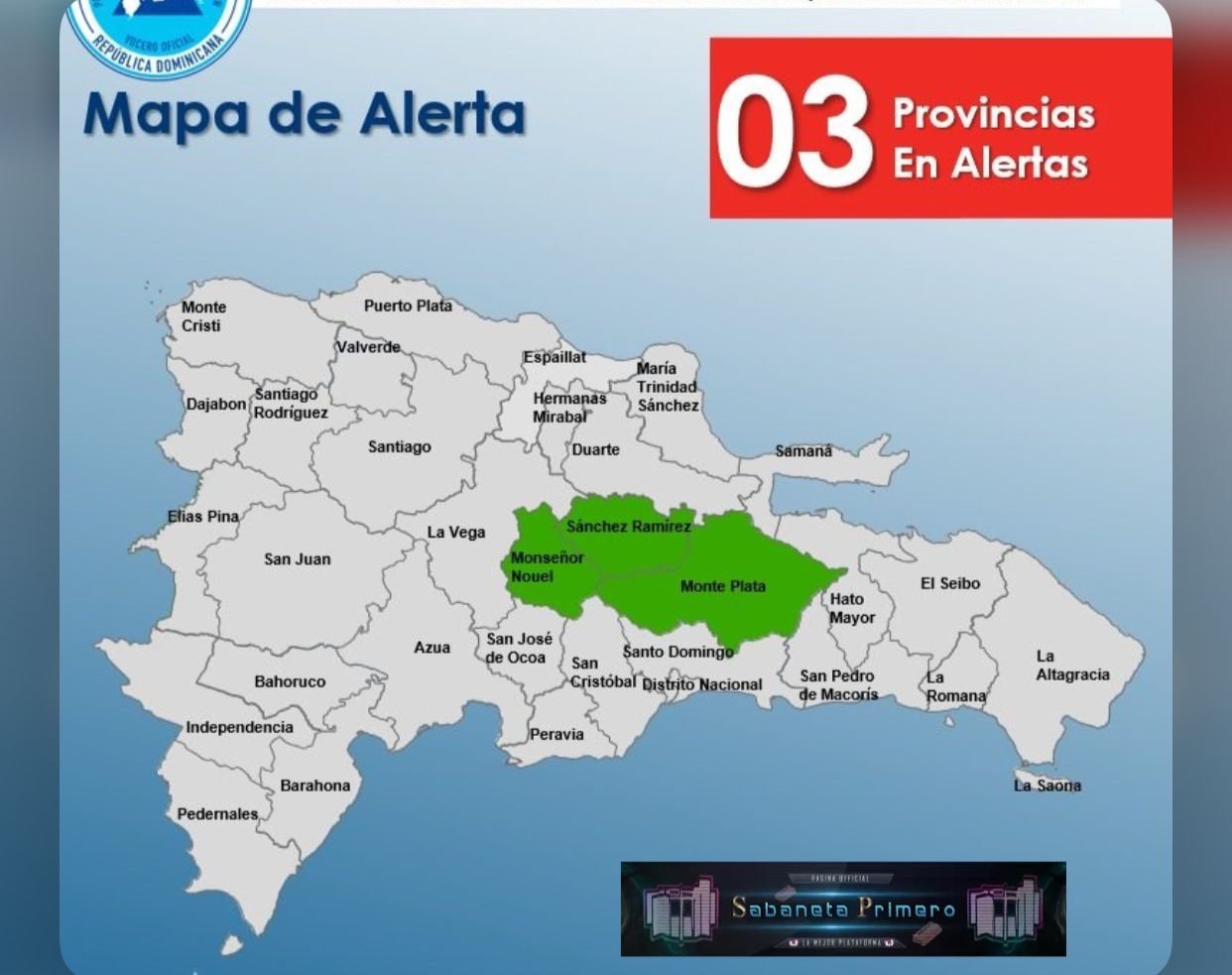 Las provincias puestas en alertas son: Monte Plata, Hato Mayor y El Seibo.