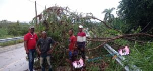 La Entrada de Pasatiempo, se incomunic贸 tras caer un enorme 谩rbol, de igual modo sucedi贸 en el puente de Maguana abajo, pero la r谩pida intervenci贸n de brigadistas del ayuntamiento, comunitarios y el mismo s铆ndico, hicieron el trabajo y habilitaron.