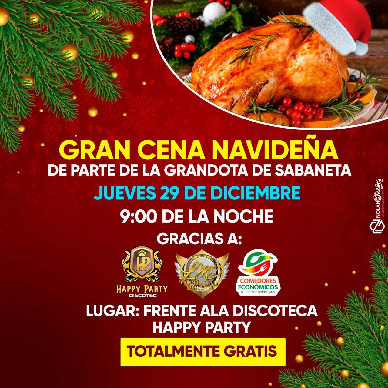 San Juan de la Maguana, RD- Como parte de su política social, "La Grandota de Sabaneta' Happy Party Discotet, tiene preparado para clientes, amigos y relacionados una extraordinaria cena navideña.