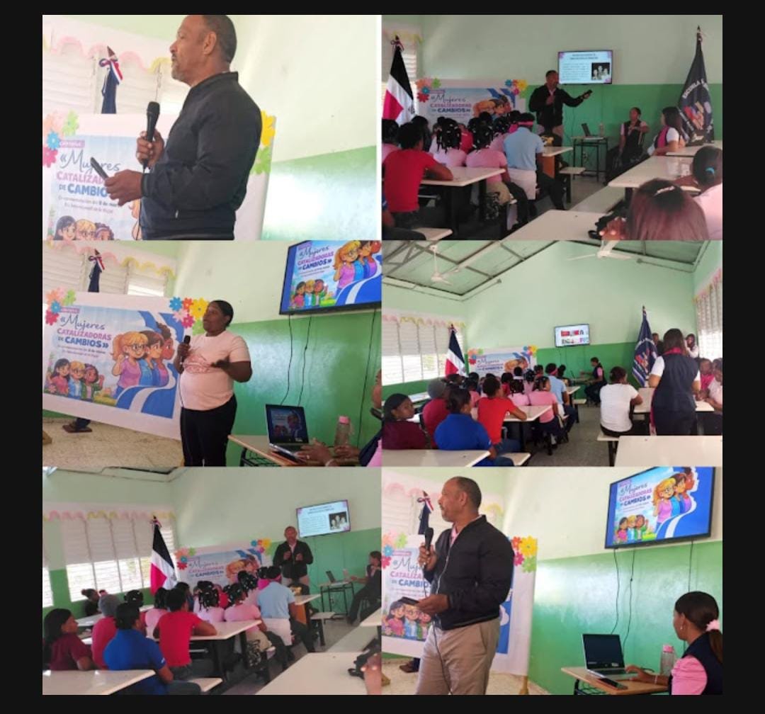 SAN JUAN DE LA MAGUANA, República Dominicana.– El licenciado Alfredo del Valle, secretario general del Sindicato Nacional de Trabajadores de la Prensa (SNTP), filial San Juan, impartió la charla titulada “Mujeres Catalizadoras de Cambios” en el Centro Educativo Carlos del Rosario, ubicado en la comunidad de Los Bancos, perteneciente al Distrito Educativo 02-05.