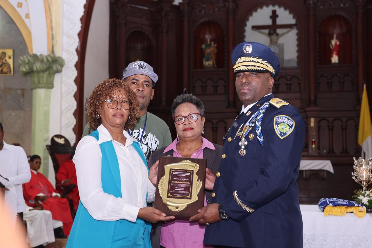 San Juan de la Maguana, R.D. La Federación de Juntas de Vecinos y Organizaciones Comunitarias, dirigida por Leonor Ramírez, entregó una placa de reconocimiento al General de la Policía Frank de los Santos Encarnación, Director Regional Oeste de la Policía para las provincias San Juan y Elías Piña.