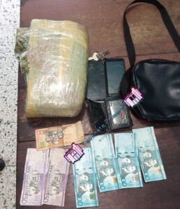 Se le fue ocupada una paca de un vegetal de color verde, presumiblemente marihuana, envuelta en cinta adhesiva color amarilla, con un peso de aproximadamente 5 libras, al detenido al ser requisado le fue ocupado dos teléfonos celulares, dos mil doscientos pesos $2,200, el individuo y lo detenido fue enviado a la sección de la DNCD para fines de ley.
