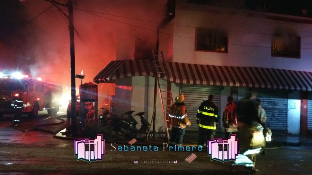 Socorrista de los bomberos acudieron esta madrugadas a sofocar el fuego en un establecimiento comercial.
