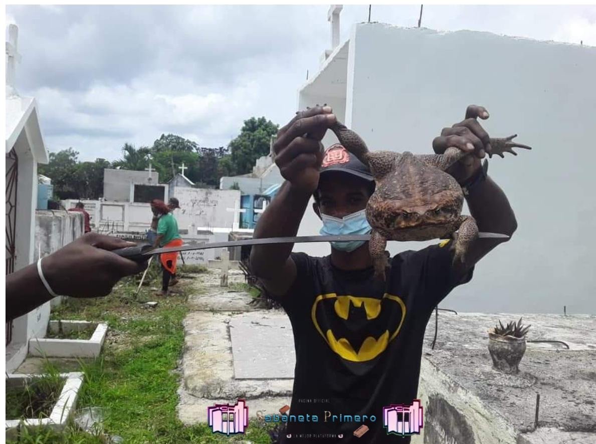 Un sapo gigante fue hallado en el Cementerio Municipal de La Romana, ubicado en la calle Duarte de esa localidad, por trabajadores de la zona.