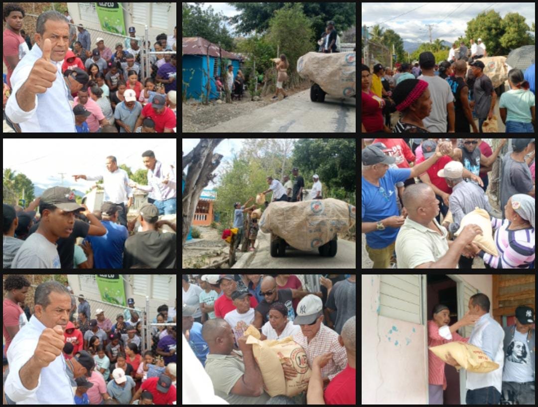 Dormidero, Las tres Maguanas, Hato Nuevo, La Mina, La Meseta, y otros sectores se congregaron en el centro comunal del distrito y all铆 recibieron el aporte; posteriormente Frank Ram贸n junto a su equipo de trabajo se trasladaron a la comunidad La Cana de Higuerito para as铆 seguir entregando casa por casa los sacos de arroz.