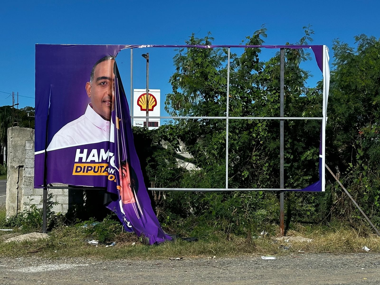 Una valla colocada en el kilómetro 3 carretera San Juan-Santo Domingo con las caras de Hamilton Marques, aspirante a diputado y Lenin de la rosa, candidato a la alcaldía fue desmantelada.