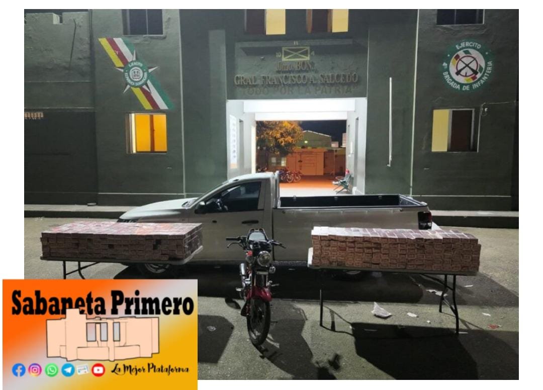 La mercancía y los medios de transporte fueron trasladados a la Fortaleza Beller, sede del 10mo. Batallón de Infantería, para los fines legales correspondientes.