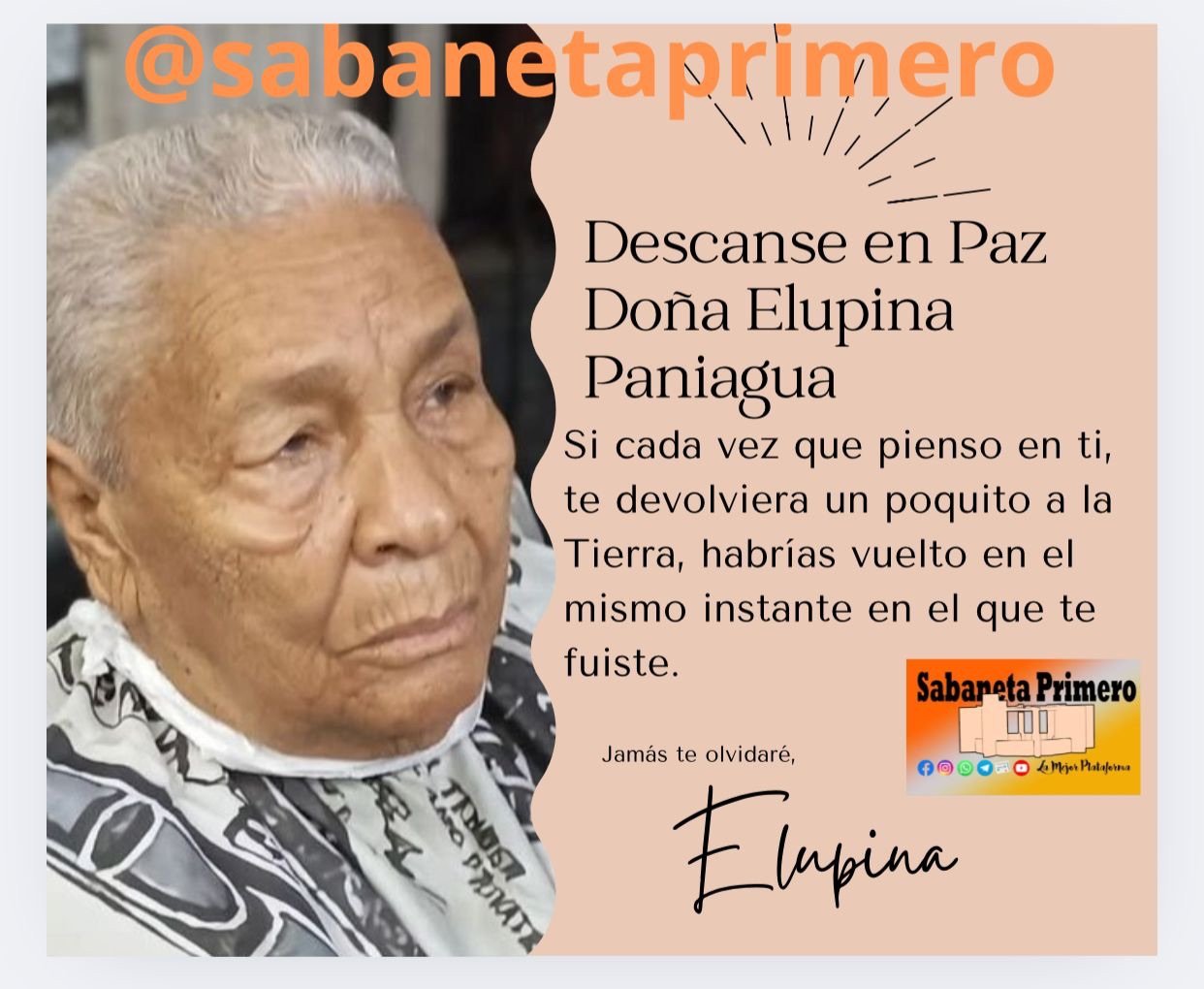 Paz al alma de Doña Elupina Paniagua, conformidad para todos sus familiares y allegados.