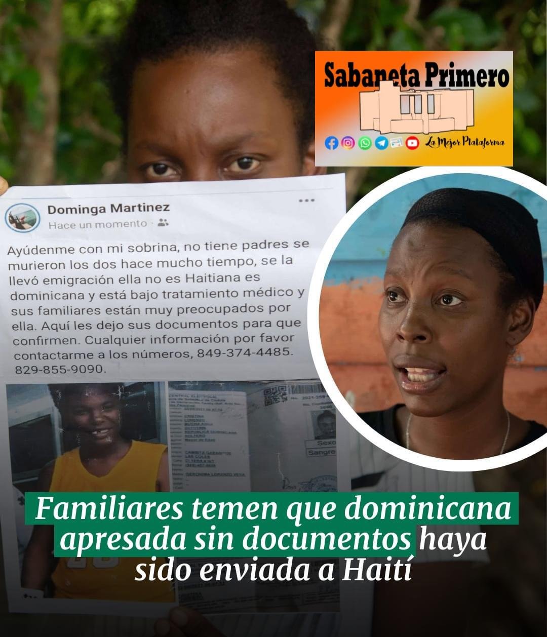Familiares de Cristina Martínez Lorenzo, quien lleva 22 días desaparecida luego que las autoridades dominicanas la apresaran por no portar sus documentos personales y confundirla con una haitiana, están desesperados porque no saben nada de la joven.