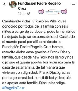 Cambiando vidas. El caso en Villa Rivas conocido por todos de la familia con seis niños a cargo de su abuela, pues la mamá los ha dejado bajo su responsabilidad. Casi todo el mundo pasó por allí pero desde la Fundación Padre Rogelio Cruz hemos resuelto dicho caso gracias a Frank Díaz y familia, que desde new York nos llamó y nos dijo que él quería aportar los recursos para la casa de esta familia, de tal manera que vivieran con dignidad. Frank Díaz, gracias por tu generosidad, sensibilidad y decisión de apoyar esta familia. Dios te bendiga.