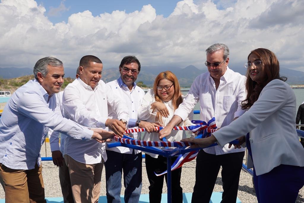 AZUA.- El presidente Luis Abinader Corona inauguró hoy una serie de obras hidráulicas que comprenden la tercera fase del Proyecto de Desarrollo Agrícola Azua II – Pueblo Viejo, con una inversión de RD$762.5 millones, acto en el que estuvo acompañado de Olmedo Caba Romano, director ejecutivo del Instituto Nacional de Recursos Hidráulicos (INDRHI), entidad responsable de su ejecución.