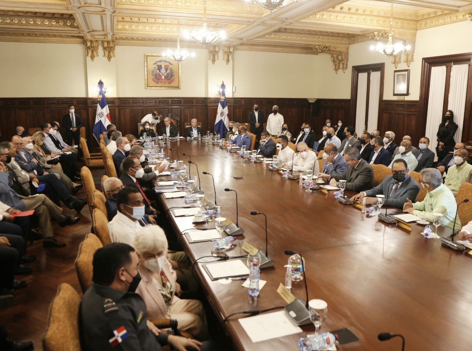 Santo Domingo, RD. El presidente Luis Abinader encabezó, junto a la vicepresidenta Raquel Peña, una reunión de ministros y directores para dar seguimiento a los objetivos y metas trazados por el Gobierno, priorizando nuevos esfuerzos para racionalizar el gasto público y poder enfrentar las alzas internacionales de los precios, sobre todo el de los combustibles.