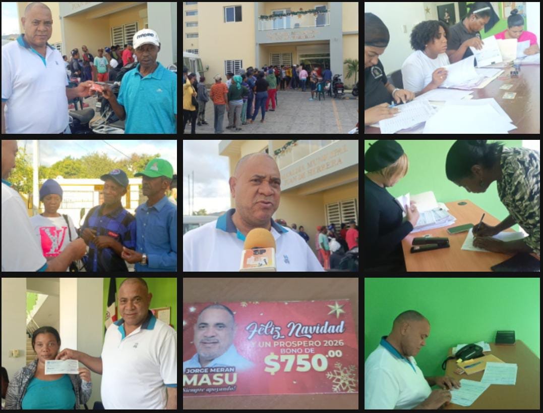 San Juan de la Maguana, RD-El alcalde y empresario del municipio de Juan de Herrera, Jorge Antonio Mer谩n Alc谩ntara ( Mas煤 ), entreg贸 la ma帽ana de este martes alrededor de tres mil bonos para poder ser usados en colmados y supermercados de este territorio.