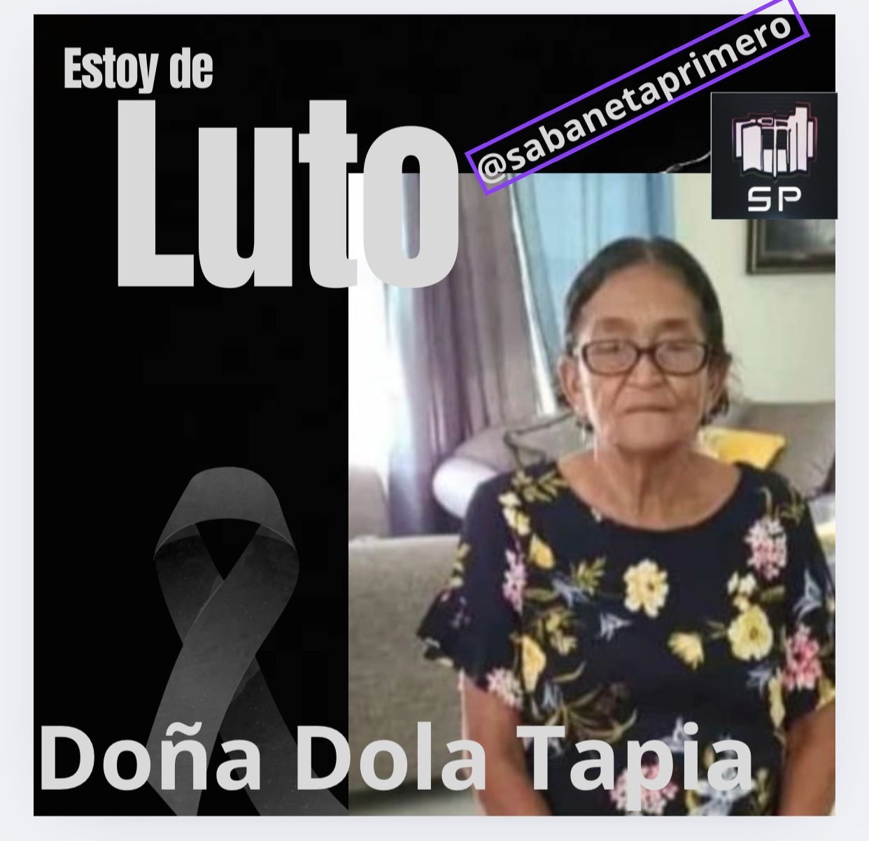 @sabanetaprimero San Juan de la Maguana, RD- Lamentamos comunicar del fallecimiento de una madre ejemplar, buena esposa, vecina innegable, murió la mañana de este miércoles en su residencia de Sabaneta la Sra. Dola Tapia, esposa de toda la vida del Sr. Manen Sànchez.