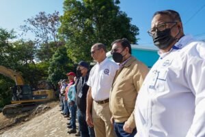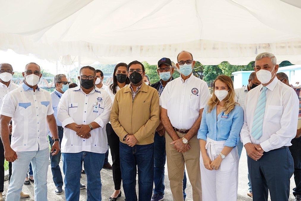 Emely Taveras, en representación del senador provincial, Eduardo Estrella; Mateo Espaillat, diputado y miembro de la Comisión de Rescate del Río Yaque del Norte, y Alexis Sosa, director provincial de Obras Públicas, entre otras autoridades.
