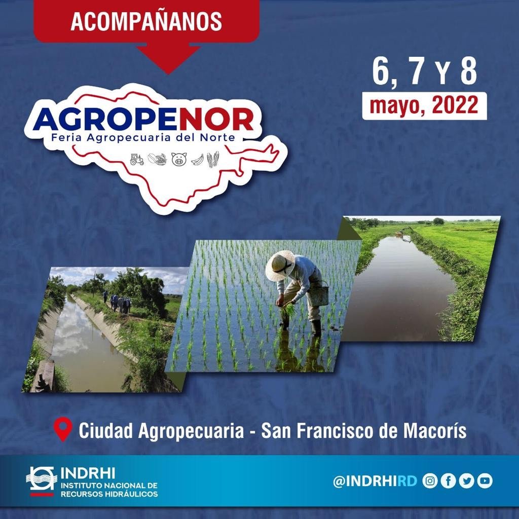 SANTO DOMINGO.- El Instituto Nacional de Recursos Hidráulicos, INDRHI, anunció su participación en la Feria Agropecuaria del Norte (Agropenor), que organiza el Ministerio de Agricultura y estará celebrándose desde el próximo viernes 6 al domingo 8 de mayo en la Ciudad Agropecuaria de San Francisco de Macorís, municipio cabecera de la provincia Duarte.