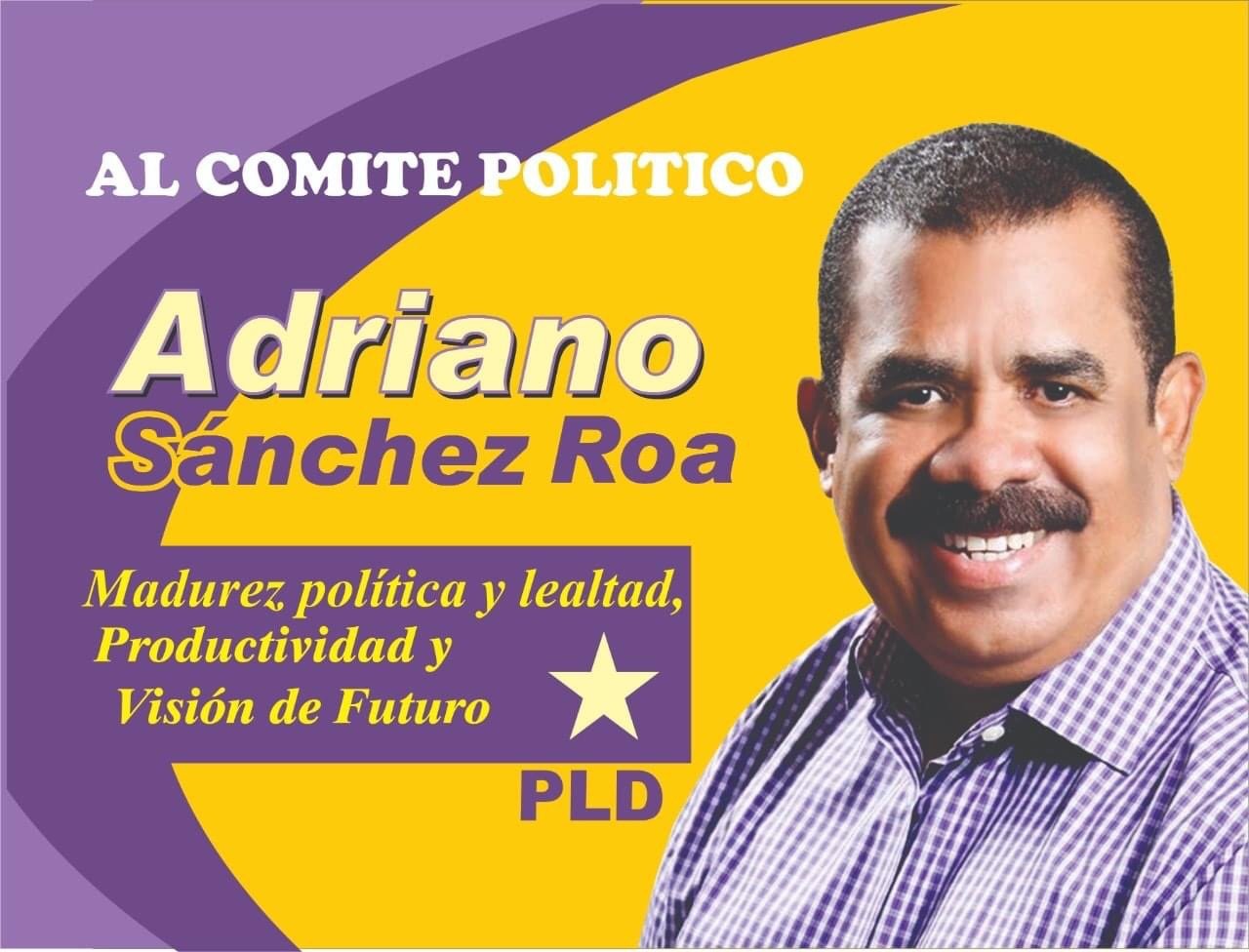 El Ing. Adriano Sánchez Roa, Ex – Senador de la República, Ex – Diputado al Congreso Nacional, Ex – Director Nacional del Fondo de Desarollo Agropecuario (FEDA), Ex – Director Ejecutivo del Instituto Agrario Dominicano (IAD), Ex – Administrador General del Banco Agrícola de la República Dominicana, quien fuera vocero en reiteradas ocasiones del PLD en el Senado, actual Titular de la Secretaría Nacional de Asuntos Agropecuarios, Miembro del Comité Central y Presidente Provincial del PLD en Elias Piña, con la ayuda de Dios, será un seguro integrante del CP de nuestro Partido.