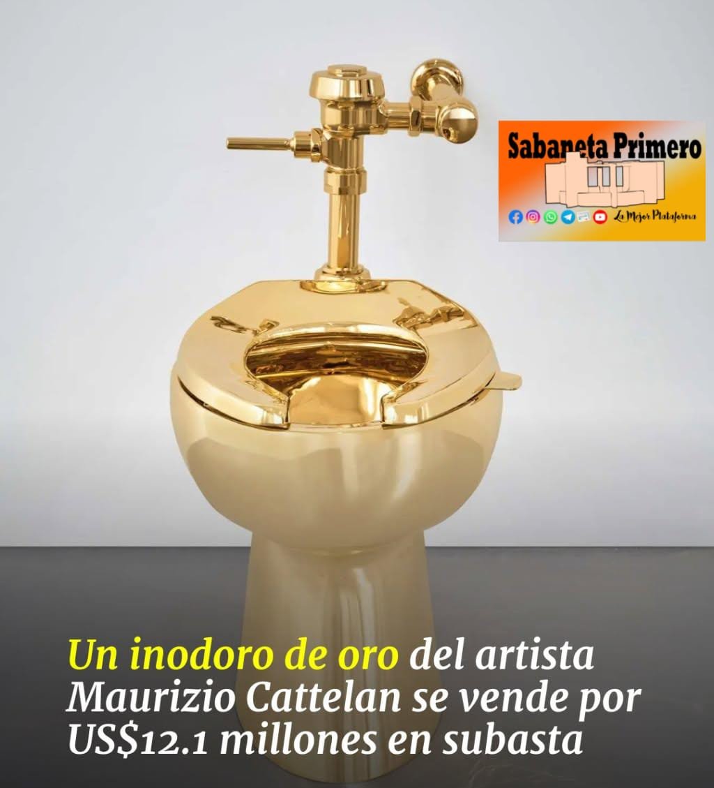 Un inodoro de oro de 18 quilates, obra del controvertido artista Maurizio Cattelan, se vendió este martes por 12.1 millones de dólares en una subasta en Sotheby´s en Nueva York, compitiendo en protagonismo con figuras como Basquiat.
