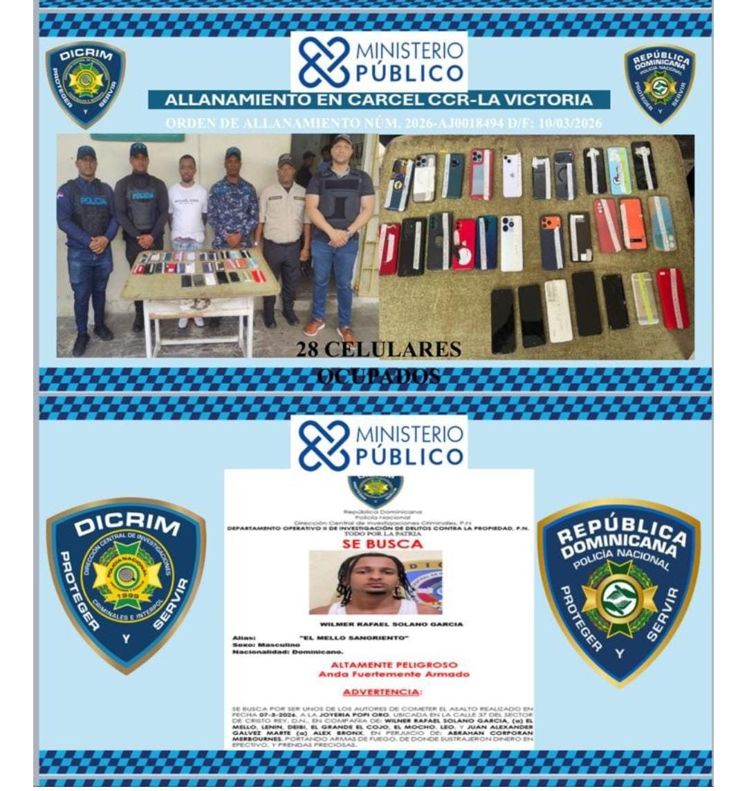 La institución indicó que con el acompañamiento del Ministerio Público, a éste le fue ejecutado un allanamiento mediante el cual las autoridades actuantes le ocuparon un total de 28 celulares de distintas marcas y modelos. En ese sentido, el recluso fue trasladado hacia la sede de la Policía Nacional, desde donde será remitido ante la justicia por este hecho.