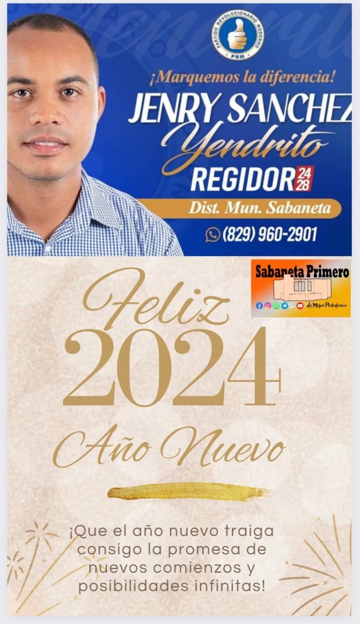 San Juan de la Maguana, RD- Jenry Sànchez aspirante a regidor del PRM en el distrito municipal de Sabaneta envió un mensaje de fin de año en la que insta a continuar luchando unidos en la búsqueda de la prosperidad, modernidad y desarrollo de esta localidad y de toda la Republica Dominicana.