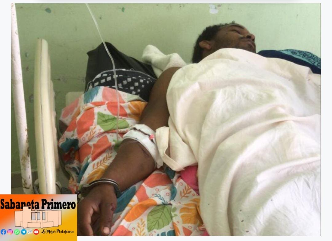 Las autoridades procedieron a esposarlo en la camilla donde reposa postrado. Pese a haber sido intervenido quirúrgicamente por la gravedad de las heridas en distintas partes de su cuerpo, según denuncian allegados.
